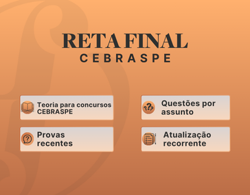 Para ajudá-lo a desvendar os segredos da banca Cebraspe, desenvolvemos este curso, o mais completo para quem está se preparando para as provas organizadas por essa banca examinadora renomada. Venha se familiarizar com o estilo da banca, o formato das provas, os modelos de questões mais comuns e os temas mais cobrados. Utilizamos uma seleção criteriosa de questões e provas clássicas e atuais para acelerar sua preparação e garantir um alto desempenho.